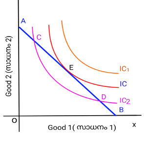 Maximum Mark-50 Question 1) Indifference curve approach is the contribution of ? Answers Option 1 Alfred Marshall Option 2 Lionel Robins Option 3 JR Hicks Option 4 PA Samuelson Question 2) What is the slope of the budget line if, price of good 1 is ₹10 and price of good 2 is ₹5 ? Answers Option 1 -2 Option 2 10 Option 3 5 Option 4 -.2 Question 3) Identify the nature of demand curve when elasticity of demand is equal to 1 ? Answers Option 1 Parallel to x axis Option 2 Parallel to y axis Option 3 Rectangular hyperbola Option 4 None of these Question 4) A fall in the price of a commodity, holding everything else constant, results an increase in demand and is referred to as ? Answers Option 1 Increase in demand Option 2 Contraction in demand Option 3 Decrease in demand Option 4 Expansion in demand Question 5) What is the price elasticity of demand if, there is no change in expenditure as a result of change in price ? Answers Option 1 O Option 2 >1 Option 3 <1 Option 4 = 1 Question 6) Consider the equation y = f (x), then the variable Y is?. Answers Option 1 Exogenous Option 2 Independent Option 3 Dependent Option 4 Unpredictable Question 7) Which of the following is the most important determinant of demand? Answers Option 1 Income Option 2 Price Option 3 Tastes and Preferences Option 4 Climate Question 8) In the given budget line equation 5X1 + 2X2 = 20, what is the vertical intercept ? Answers Option 1 5 Option 2 2 Option 3 7 Option 4 10 Question 9) A collection of indifference curves is called Answers Option 1 Demand Option 2 Budget line Option 3 Equilibrium Option 4 Indifference map Question 10) Mr. A consumes two fruits : Apple and Orange. He has monotonic preference, which implies that: Answers Option 1 He prefers a bundle with more apple and orange Option 2 He prefers a bundle with less quantity of both the fruits Option 3 He prefers a bundle with more of at least one of the fruits and no less of the other Option 4 He prefers no specific bundle Question 11) Pick out the correct equation for showing consumer's budget constraint ? Answers Option 1 P1X1 + P2X2 = M Option 2 P1X1 + P2X2 ≤ M Option 3 P1X1 + P2X2 ≥ M Option 4 P1X1 + P2X2 > M Question 12) The name given to the commodities using together ? Answers Option 1 Complimentary goods Option 2 Substitutable goods Option 3 Inferior good Option 4 Normal good Question 13) Want satisfying power of a commodity is called ? Answers Option 1 Want Option 2 Demand Option 3 Utility Option 4 Value Question 14) When the income of the consumer was ₹500, he buys 4kg of good y. His income increased by ₹100, then he reduced the consumption of good y by 2 units. What is the type of good y ? Answers Option 1 Substitutable good Option 2 Inferior good Option 3 Luxury goods Option 4 Normal good Question 15) Price of a commodity increased from 10 to 15, as a result quantity demanded decreased from 100 to 75. What is the value of elasticity? Answers Option 1 5 Option 2 .5 Option 3 15 Option 4 10 Question 16) What is called if demand increases as a result of decrease in price ? Answers Option 1 Contraction in demand Option 2 Decrease in demand Option 3 Expansion in demand Option 4 Increase in demand Question 17) Elasticity in a rectangular hyperbola type demand curve will be ? Answers Option 1 >1 Option 2 1 Option 3 .1 Option 4 < Question 18) In the given equation q= a-bp, slope is represented by? Answers Option 1 p Option 2 b Option 3 -b Option 4 a Question 19) Slope of a IC is represented by ? Answers Option 1 DMU Option 2 DMRS Option 3 Price ratio Option 4 None of these Question 20) Suppose a consumer's preferences are monotonic, which among the following bundles consumer will select ? Answers Option 1 (2,1) Option 2 (1,1) Option 3 (2,2) Option 4 (2,3) Question 21) In drawing an individual demand curve, all but one of the following are kept constant ? Answers Option 1 Income of the consumer Option 2 Price of the commodity Option 3 Price of related question Option 4 Tastes and preferences Question 22) Which of the following goods has more elastic demand ? Answers Option 1 Rice Option 2 Computer Option 3 Life saving medicine Option 4 Electricity Question 23) Find the odd one out Answers Option 1 Tea and Coffee Option 2 Bread and Jam Option 3 Car and Petrol Option 4 Sugar and Tea Question 24) In the below given diagram, movement of budget line from AB to AB1 is due to Answers Option 1 Decrease in the price of good 1 Option 2 Decrease in the price of good 1 Option 3 Increase in the price of good 2 Option 4 Decrease in the price of good 2 Question 25) A demand curve is given, in which identify elasticity at point 'M' Answers Option 1 1 Option 2 >1 Option 3 <1 Option 4 0 Question 26) The relationship between demand and determinants of demand is called Answers Option 1 Demand Option 2 Utility function Option 3 Demand function Option 4 Price function Question 27) Change in demand caused by change in price is called Answers Option 1 Income effect Option 2 Price effect Option 3 Demand effect Option 4 Law of demand Question 28) In the below diagram identify point 'C' Answers Option 1 Under utilisation Option 2 Preferred bundle Option 3 Inferior bundle Option 4 Equal satisfaction Question 29) The rate at which one good is substituted for another is called Answers Option 1 Substitution effect Option 2 Rate of substitution Option 3 Budget line Option 4 None of these Question 30) A linear demand equation is given as q = a - bp. Here , if price = 0 then demand will be Answers Option 1 -b Option 2 b Option 3 q Option 4 a Question 31) In the below diagram , movement of demand curve from DD to D1D1 is due to Answers Option 1 Increase in demand Option 2 Decrease in demand Option 3 Expansion in demand Option 4 Contraction in demand Question 32) The concept ' elasticity ' is first introduced by economist Answers Option 1 Adam Smith Option 2 JM Keynes Option 3 Alfred Marshal Option 4 David Ricardo Question 33) Two individual demand curves are give as q1 = 20 - p and q2